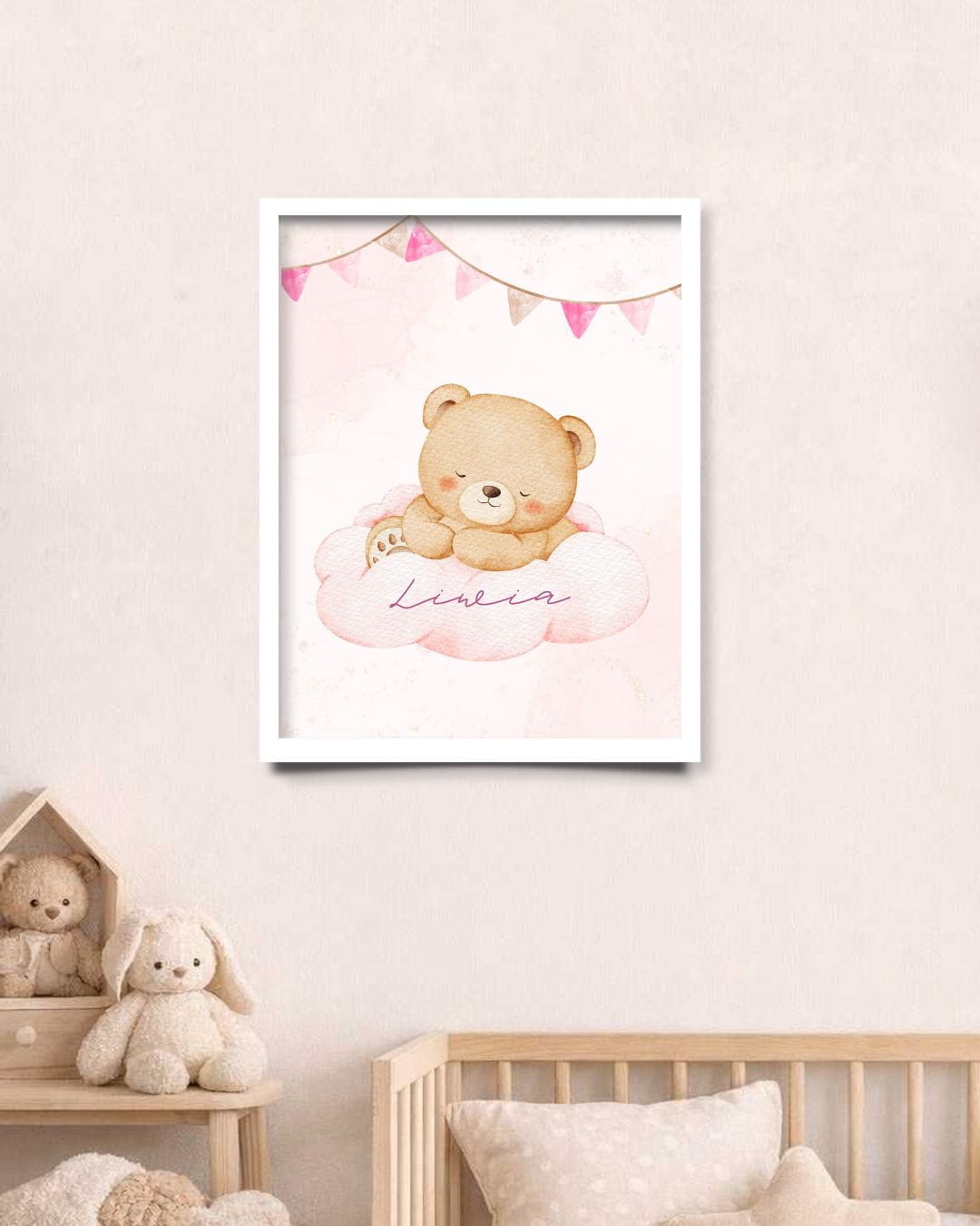 W ramce znajdzie się także imię Twojego dziecka, dzięki czemu dekoracja nabiera osobistego charakteru i staje się pamiątką na długie lata. To prosty, a zarazem bardzo efektowny sposób, by nadać wnętrzu indywidualny akcent.