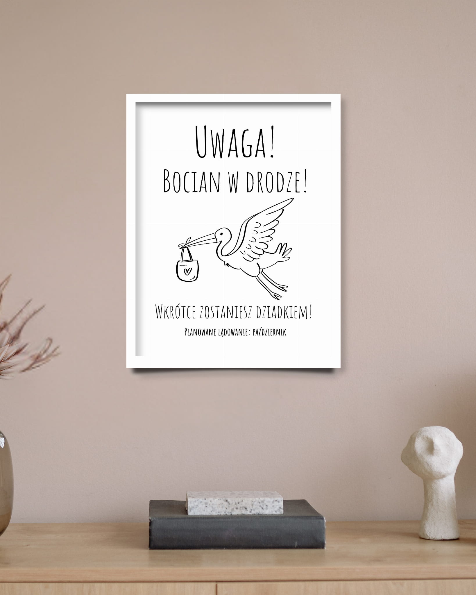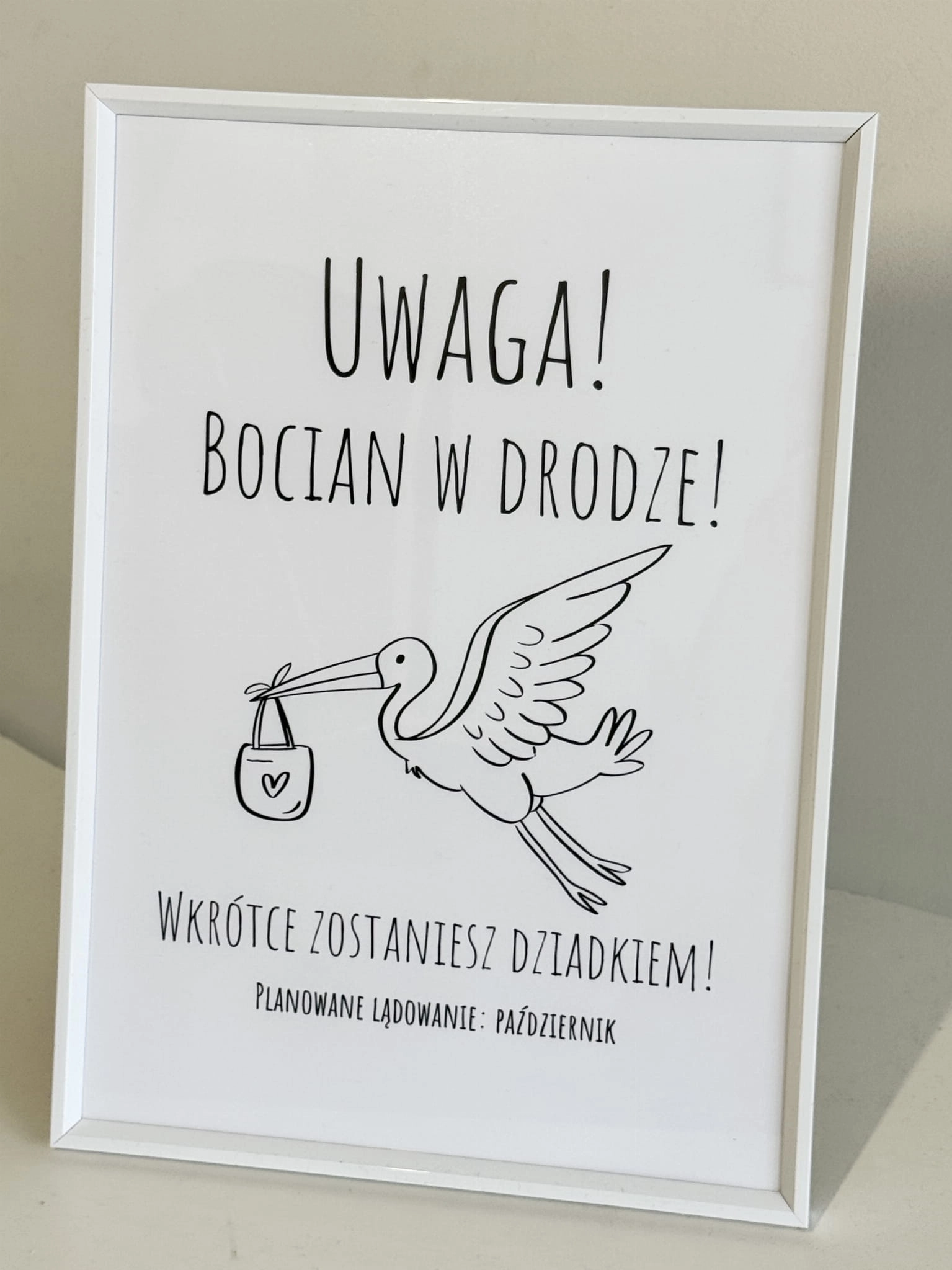 Chcesz w nietypowy sposób przekazać radosną nowinę? Ramka „Bocian w drodze” to humorystyczny sposób, aby ogłosić ciążę i sprawić, że przyszli dziadkowie pękną ze śmiechu i wzruszenia!