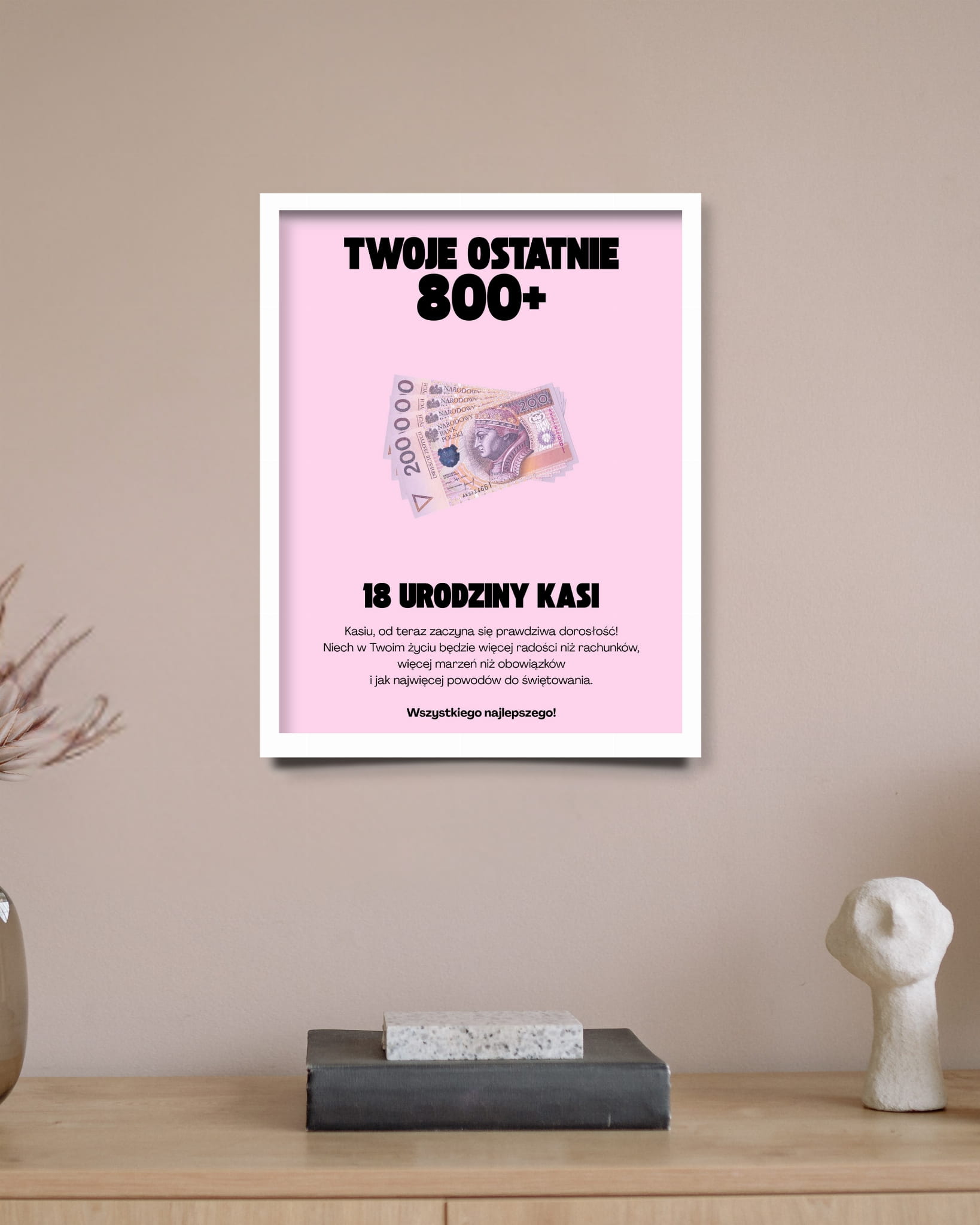 Ramka „Ostatnie 800+” na 18 Nastkę – personalizowany prezent na urodziny