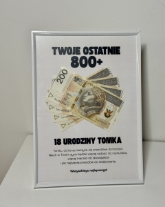 Ramka „Ostatnie 800+” na 18 Nastkę – personalizowany prezent na urodziny