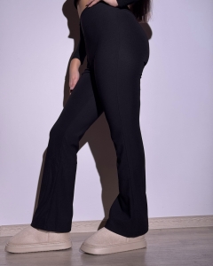 Spodnie dzwony legginsy prążkowane z rozszerzaną nogawką czarne